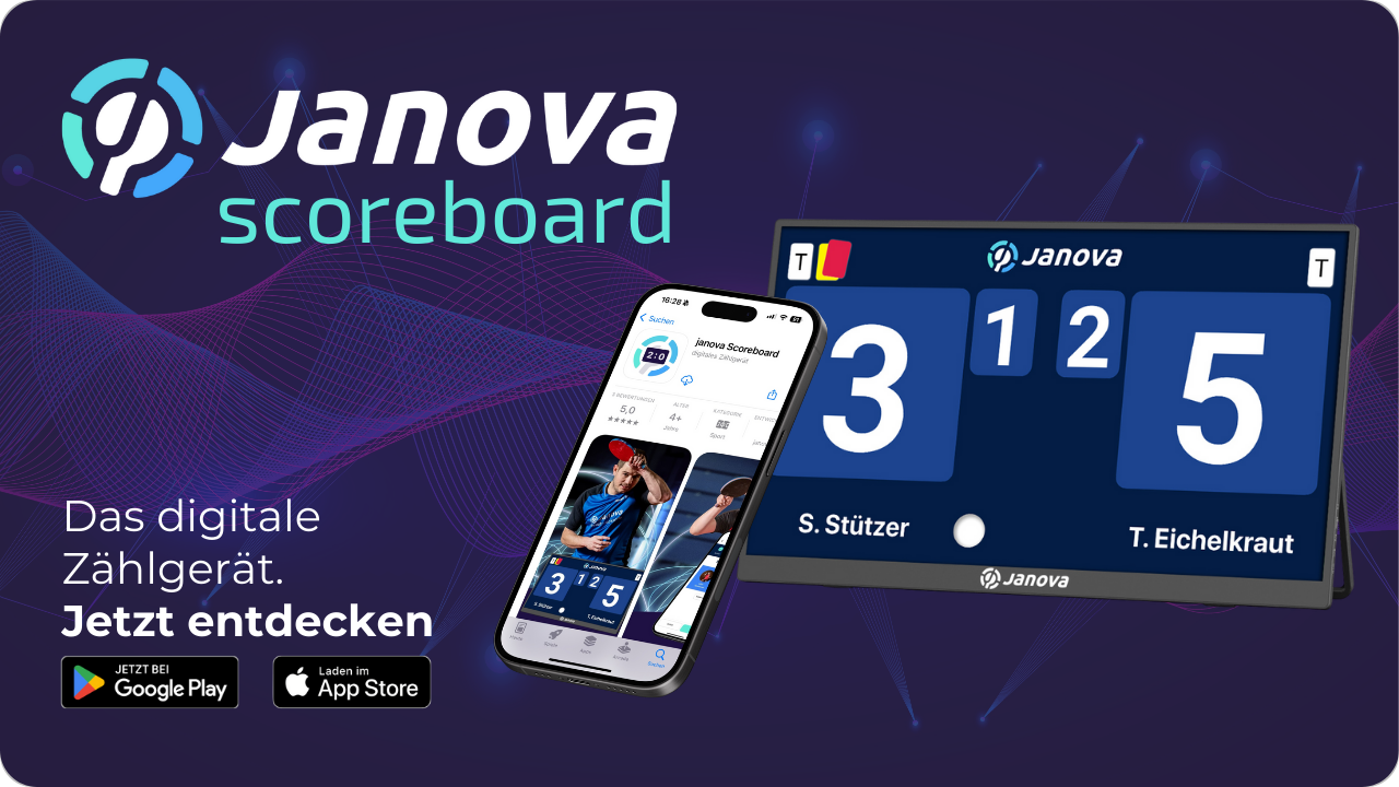 Entdecke das janova Scoreboard. Das digitale Zählgerät für den Tischtennissport. Die App kannst Du jetzt kostenlos runterladen.